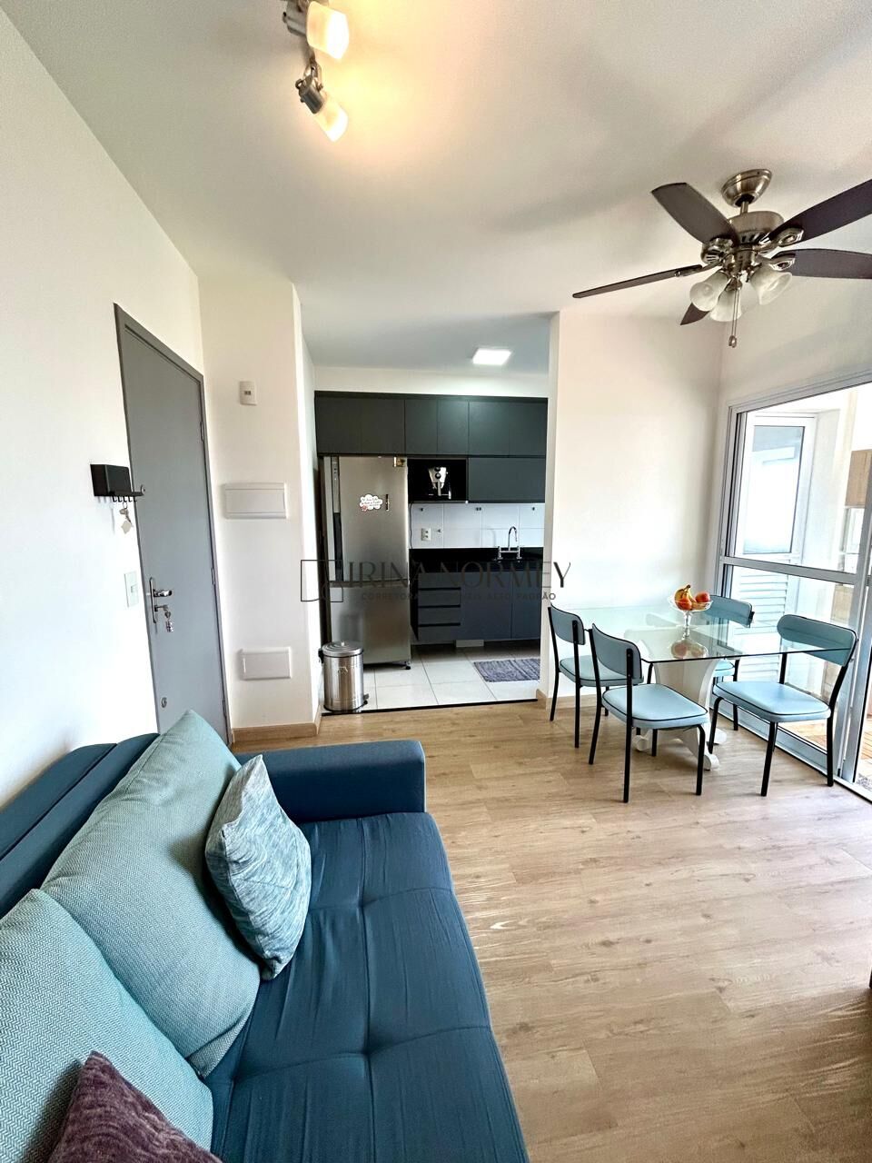 Móveis: armários embutidos (cozinha, varanda e quartos), 2 sofás, mesa, cadeiras, 3 mesinhas de apoio, banquinho sapateira na entrada, armário no quarto 2 com sapateira, puffs baú, cama box baú casal queen, móvel homeoffice e penteadeira embutidos, cama de solteiro, prateleiras, escrivaninha retrátil, 3 ventiladores de teto