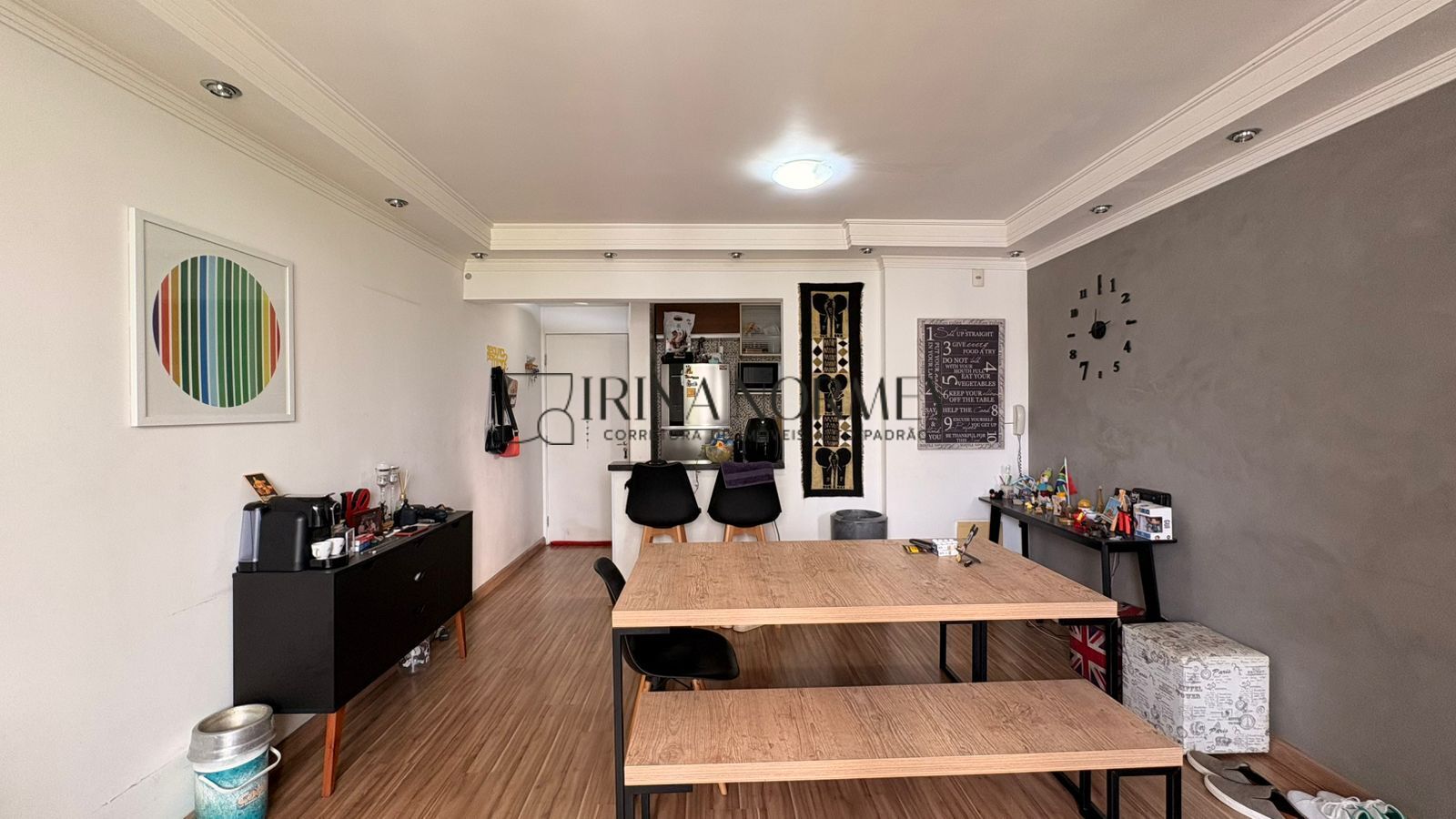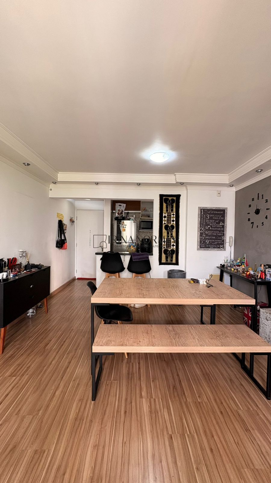 - Living: Sala de estar e jantar integradas, criando um ambiente espaçoso para receber amigos e família.