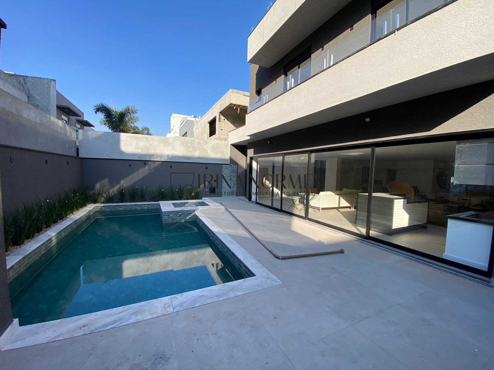 A casa conta com quatro suítes, todas equipadas com closet, garantindo privacidade e espaço para todos os membros da família. No térreo, você encontrará uma sala ampla que se integra harmoniosamente com a cozinha e o espaço gourmet, que possui uma churrasqueira perfeita para momentos de lazer. A área externa é complementada por uma linda piscina com hidromassagem, ideal para relaxar e se divertir.