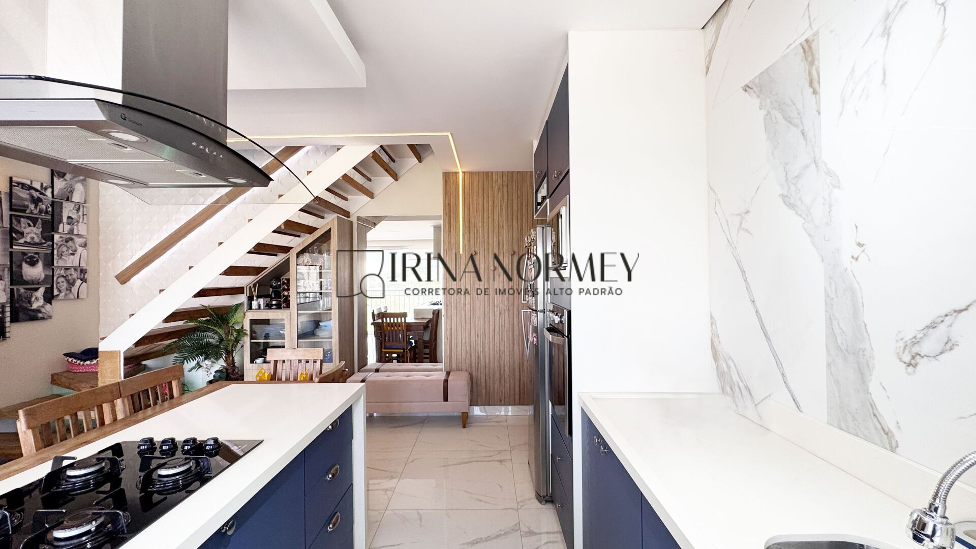 - Praticidade: Parte inferior já mobiliada com sofá, mesa de jantar e cozinha equipada (cooktop, forno e micro-ondas).
