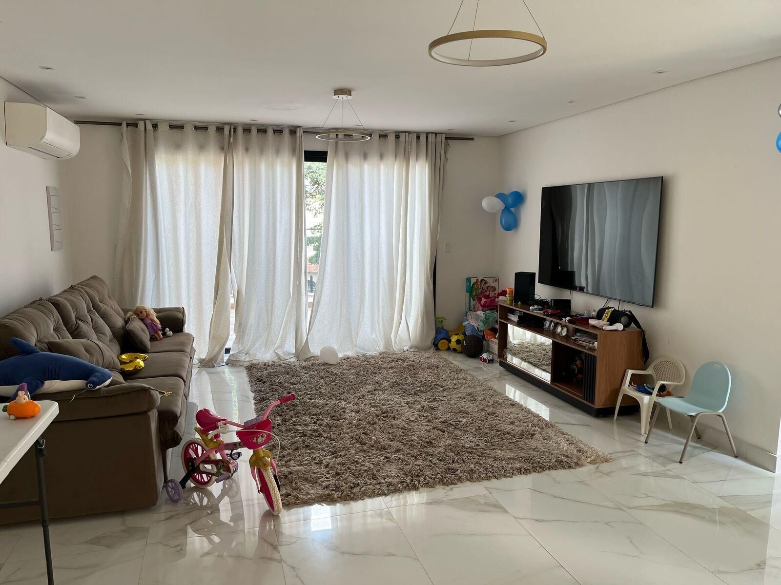 Sala com varanda grande e ar condicionado,